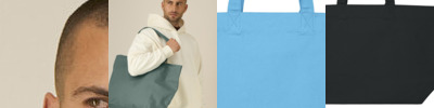 100% Recycled cotton canvas (open end). Midweight tote bag. Folded hem at top edge. Bottom and side soufflé. Long self-fabric handles with cross-stitch for reinforcement. Inside self-fabric pocket. Single-needle stitch at top edge.